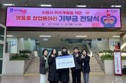 e데일리뉴스 | 수원 영통중학교 창업동아리 학생들이 창업 활동 수익금을 모아 수원시 취약계층 시민을 위해 기부했다. 1월 29일 수원시청 본관 1층 로비에서 열린 기부금 전달식에는 윤영숙 시민복지국장, 영통중학교 창업동아리 학생 등이 참석했다. 학생들은 직접 디자인·제작한 탁상용 달력 100개를 판매해 마련한 수익금 45만 원을 수원시에 전달했다. 수원시는 기부금을 취약계층 시민 지원을 위해 사용할 예정이다. 영통중학교 창업동아리 학생들은 “작은 나눔이지만 어려운 이웃들에게 도움이 되기를 바라는 마음으로 기부에 참여했다”며 “직접 만든 작품으로 나눔을 실천할 수 있어 기쁘다”고 소감을 밝혔다. 윤영숙 시민복지국장은 “학생들이 활동 수익금으로 이웃사랑을 실천한 모습이 대견하다”며 “따뜻한 나눔이 지역사회 전반으로 확산되기를 바란다”고 말했다.