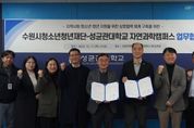 e데일리뉴스 | 수원시청소년청년재단은 11일 성균관대학교 자연과학캠퍼스와 청소년ㆍ청년의 취‧창업 지원과 전인적 성장을 위한 업무협약(MOU)을 체결했다고 밝혔다. 이번 협약을 통해 양 기관은 △대학생 연계사업 활성화를 위한 지속적인 교류활동 추진 및 내실화 △청소년의 진로 탐색을 위한 멘토링 및 학과 탐방 기회 제공 △기타 상호 협력이 필요하다고 인정되는 분야에서의 협조 체계를 구축할 예정이다. 재단 관계자는 "이번 협약이 단순한 형식적 절차에 머무르지 않고 우리 청소년‧청년들에게 새로운 경험과 지속적인 성장의 기회를 제공하는 중요한 출발점이 되기를 희망한다"며, "협약의 성공적인 이행을 위해 상호 긴밀하게 협력해 나갈 것"이라고 밝혔다.