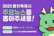 e데일리뉴스 | 용인특례시는 ‘시민과 함께 뽑은 2025년 용인특례시 주요 뉴스’ 선정을 위해 22일까지 온라인 설문조사를 한다고 17일 밝혔다. 시는 한 해 동안 시가 추진한 정책이나 사업 중 언론의 주목을 받고, 시민의 체감도가 높았던 사업을 주요 뉴스로 선정해 공개하고 있다. 시민, 직원, 출입 기자를 대상으로 온라인 투표를 진행하며, 투표 결과를 합산해 많은 표를 얻은 순서대로 주요 뉴스를 선정한다. 투표에 참여하면 시민의 생활과 밀접한 사업, 시의 주요 정책, 시정 현안 등을 기준으로 사전 선정한 30개 주요 뉴스 중 최대 5개 뉴스를 선택할 수 있다. 투표는 네이버 폼으로 진행한다. 용인특례시 홈페이지나 공식 인스타그램, 블로그 등 사회관계망서비스(SNS)에 게시된 큐알(QR)코드를 통해 접속할 수 있다. 결과는 오는 23일 시 홈페이지와 SNS를 통해 발표한다. 시 관계자는 “2025년은 용인특례시가 문화·스포츠·도시개발 등 다양한 분야에서 한 단계 이상 성장한 한 해였다”며 “한 해를 마무리하며 모두가 용인의 성장 여정을 함께 되짚어보고, 더 나은 미래를 향한 한 걸음을