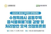 e데일리뉴스 | 수원특례시의회 환경안전위원회는 11월 6일, 오후 2시, 수원시청 별관 1층 중회의실에서 ‘공동주택 음식물류폐기물 감량 및 처리방안 모색을 위한 의정토론회’를 개최한다고 밝혔다. 음식물류폐기물, 즉 음식물쓰레기는 단순히 악취와 수거 문제를 넘어 매립이나 소각으로 인한 2차 환경오염을 일으키고 기후위기에도 악영향을 미치고 있기 때문에 이번 토론회는 음식물쓰레기 발생을 원천적으로 줄이고, 발생된 쓰레기를 보다 효율적으로 자원화하기 위한 기술 중심의 대응 방안을 고민하는 자리이다. 이를 위해 ▲음식물류폐기물 감량 및 처리 과정에서의 기술 동향 ▲타 지자체의 적용 우수 사례 ▲수원시의 음식물류폐기물 처리 현황 등을 공유하고 전문가, 시민과 함께 지속 가능한 음식물류폐기물 관리 체계를 구축하는 데 필요한 제도, 예산지원 등에 대해서도 논의할 계획이다. 환경안전위원회 채명기 위원장은 생활폐기물 처리 비용 절감과 자원 재활용 확대를 위한 정책 제안에 힘써왔으며 이번 토론회에서는 좌장으로서 지정토론을 진행할 예정이다. 채명기 위원장은“음식물쓰레기는 단순한 폐기물이 아니라, 기술과 정책의 융합으로