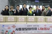 e데일리뉴스 | 사통팔달협의회는 지난 5일, 민족 대명절인 설을 앞두고 관내 어려운 이웃을 위한 ‘설맞이 사랑나눔 키트’ 100박스를 수원시 팔달구에 전달했다고 밝혔다. 이번 나눔 행사는 경기 침체와 물가 상승으로 인해 여느 때보다 추운 겨울을 보내고 있을 소외계층에게 따뜻한 명절의 정을 나누기 위해 마련됐으며, 회원들이 십시일반 뜻을 모아 정성스럽게 준비한 ‘사랑나눔 키트’ 100박스는 관내 홀몸 어르신, 한부모 가정 등 취약계층 가구에 전달될 예정이다. 정찬해 사통팔달협의회장은 “우리 이웃들이 설 명절만큼은 외로움 없이 따뜻하고 풍성하게 보내시길 바라는 마음으로 회원들과 정성을 모았다”며, “앞으로도 지역사회의 사각지대를 살피며 소통과 나눔을 이어가는 협의회가 되겠다”고 소감을 밝혔다. 황규돈 팔달구청장은 “매년 명절마다 잊지 않고 이웃사랑을 실천해 주시는 사통팔달협의회 회원분들께 깊은 감사를 드린다”며, “후원해주신 물품은 도움이 필요한 이웃들에게 소중한 마음까지 잘 담아 전달하겠다”고 말했다. 한편, 수원시 팔달구 사통팔달협의회는 지역 발전과 봉사를 위해 만들어진 민간봉사단체로, 매년 명절