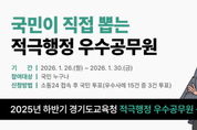 e데일리뉴스 | 경기도교육청이 공공의 이익을 높인 적극행정 우수공무원 선정을 위해 2025년도 하반기 대국민 심사를 실시한다. 도교육청은 창의적이고 능동적인 행정을 펼친 각 기관의 추천 사례를 접수해 1차 예선심사에서 우수사례 15건을 선정했다. 이를 대상으로 1월 26일부터 30일까지 ‘소통24’누리집에서 국민이 참여하는 온라인 투표 방식의 대국민 심사를 진행한다. 참여자는 1인당 3건의 우수사례에 투표할 수 있다. 본선 진출자는 예선심사 점수 60%와 국민투표 결과 40%를 합산해 최종 결정된다. 선발된 공무원에게는 교육감 표창과 포상금, 특별승급의 인사상 가점부여 등 다양한 특전을 제공할 계획이다. 이번 선발은 단순한 성과 평가를 넘어 적극행정의 모범사례를 널리 알리고, 공직사회 전반에 적극행정 문화를 확산시키는 의미가 있다. 특히 국민이 직접 우수공무원을 선정함으로써 정책 수요자의 관점이 반영된다는 점에서 공정하고 투명한 심사 절차가 마련될 것으로 기대된다. 도교육청은 앞으로도 국민이 체감하는 변화를 만들어낸 공무원의 노력을 널리 알리고, 적극행정을 일상적 공직문화