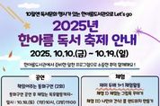 e데일리뉴스 | 수원시청소년청년재단 수원청소년문화센터 한아름도서관은 2025. 독서의 달을 기념하여‘한아름독서축제’를 10월 10일부터 10월 19일까지 운영한다. 이번 독서축제는 △스피치 강사와 함께하는 북토크 강연 △동화구연 공연 △재미 두배 1+1 체험활동 △원화 명화 전시 △도서관 이용자 대출 이벤트 등 청소년과 지역주민이 함께 공감하며 즐길 수 있는 다양한 프로그램으로 구성했다. △스피치 강사와 함께하는 북토크 강연 △동화구연 공연은 사전접수를 통해 참여가 가능하며, 재미 두배 1+1 체험 활동은 별도 접수 없이 현장에서 선착순 참여로 가능하다. 참가비는 전액 무료이다. 사전접수는 10월 1일 수요일부터 선착순으로 모집하며, 신청 방법은 수원시청소년청년재단 홈페이지‘한아름독서축제’안내문의 QR코드로 접속하여 신청할 수 있다. 한아름도서관은 이번‘한아름독서축제’를 통해 청소년과 지역주민의 독서 문화를 장려하고 도서관 활성화를 도모하고자 한다.