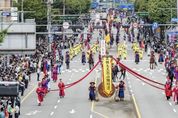 e데일리뉴스 | ‘K-축제’로 자리매김한 정조대왕 능행차 공동재현이 28일 수원에서 열렸다. 오전에 세차게 비가 내렸지만 수원종합운동장에서 본격적인 행렬이 시작된 오후에는 비가 그쳐 수많은 관람객이 정조대왕 능행차 재현을 함께 즐겼다. 정조대왕 능행차 재현 행렬(수원 구간)은 오전 노송지대(1구간)에서 시작됐다. 오후 3시 30분 수원종합운동장에서 행렬이 출발했고, 종합운동장에서 행궁광장에 이르는 길 양쪽은 관람객들로 가득했다. 시민 2000여 명과 말 70여 필이 행렬에 참여했다. 행궁광장에서 정조대왕이 입궁하는 퍼포먼스로 능행차 공동재현은 마무리됐다. 행궁광장에서는 국제자매도시 공연단의 축하공연, 정조대왕 행차를 환영하는 축하행렬인 수원화성 퍼레이드, 정조대왕 능행차 재현·입궁 퍼포먼스, KBS 국악관현악단과 국악인 김영임, 유태평양의 협연 콘서트가 이어졌다. 이재준 수원시장, 이재식 수원시의회 의장, 수원 지역 국회의원들도 행렬에 참여하며 시민들과 함께했다. 행궁광장에서 시민들을 만난 이재준 시장은 “수많은 시민이 함께 즐긴 정조대왕 능행차 공동재현은 정조대왕이 꿈꿨던 여민동락(