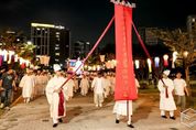 e데일리뉴스 | 정조대왕의 깊은 효심과 애민 정신을 기리는 ‘2025 정조대왕효문화제·정조대왕능행차’가 27일 정조효공원과 융릉 일원에서 막을 올렸다. 정조대왕효문화제는 지난 2002년부터 이어져 온 화성특례시 대표 역사문화축제로, 역사적 의의와 현대적 감각을 결합한 다채로운 프로그램이 시민과 관광객을 맞이하고 있다. 첫날인 27일에는 1789년 아버지 사도세자의 묘를 조선 최고의 명당, 화성 현륭원으로 옮기는 과정을 400여 명의 시민들과 함께 재현한 야간행렬 ‘현륭원 천원(遷園)’이 선소리와 함께 장엄한 장면을 연출하며 관람객들에게 큰 감동을 안겼다. 개막식에 앞서 정명근 화성특례시장이 26명의 효행자에게 ‘효행상’을 시상하며 정조대왕의 숭고한 효심을 기렸다. 효행자에게는 개막식 좌석 앞자리를 배정해 정조대왕이 ‘양로연’에서 노인들을 위해 왕의 앞자리를 내어주었다는 일화를 따르기도 했다. 개막식에서는 재궁(왕실 장례용 관)을 묏자리에 모시는 ‘하현궁 퍼포먼스’에서는 정조대왕이 어머니 혜경궁 홍씨의 회갑잔치 날 효도와 감사의 의미를 담아 복사꽃을 드렸던 것처럼 주요 내빈들이 복사꽃을 재궁 위에