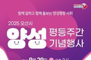 e데일리뉴스 | 오산시는 오는 9월 29일 오후 2시, 오산시청 3층 대회의실에서 ‘2025년 양성평등주간 기념행사’를 개최한다고 밝혔다. 이번 행사는 “모두가 존중받는 성평등 사회, 모두가 행복한 오산”을 주제로 양성평등의 의미를 되새기고 시민이 함께 소통하며 즐길 수 있는 프로그램으로 진행된다. 행사는 1부와 2부로 나뉘어 열린다. 먼저 1부에서는 양성평등 실천 유공자에 대한 표창이 수여되고 이권재 시장이 직접 축사를 전한다. 이어지는 2부에서는 ‘양성평등 소통 힐링 토크쇼’가 진행되며, 개그우먼 출신으로 육아맘 힐링콘서트 ‘투맘쇼’에서 활동 중인 조승희와 KBS 개그콘서트 ‘소통왕 말자 할매’ 코너로 잘 알려진 김영희가 출연한다. 두 사람은 ‘동갑이몽’이라는 주제를 통해 양성평등에 관한 이야기를 쉽고 재미있게 풀어내며 시민과 자유롭게 소통할 예정이다. 오산시 관계자는 “이번 행사가 양성평등의 가치를 확산하고 성평등한 사회 분위기를 조성하는 계기가 되길 바란다”며, “시민들의 많은 관심과 적극적인 참여를 부탁드린다”고 말했다.