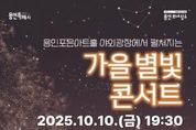 e데일리뉴스 | 용인문화재단은 오는 10월 10일 오후 7시 30분, 새롭게 단장한 용인포은아트홀 야외광장에서 ‘가을 별빛 콘서트’를 개최한다. 이번 공연은 가을밤의 정취 속에서 시민들에게 특별한 추억을 선사하고, 용인의 대표 광장형 축제를 알리기 위해 마련됐다. ‘가을 별빛 콘서트’에는 가수 거미, 유리상자 이세준, 힙합 아티스트 행주·마린·블랙나인, 그리고 소프라노 정나리가 출연해 대중음악·클래식·힙합을 아우르는 다채로운 무대를 선보일 예정이다. 이번 공연은 무료로 진행되며, 사전 댓글 이벤트를 통한 예약석(현재 마감)과 공연 당일 현장 선착순 입장석으로 운영된다. 현장 참여자는 오후 5시부터 대기 후 오후 6시부터 선착순 입장할 수 있으며, 돗자리석과 계단석 등 다양한 방식으로 자유롭게 관람할 수 있다. 특히 이번 ‘가을 별빛 콘서트’는 시민 참여형 현장 이벤트도 마련됐다. 입장객 1,800명에게는 별 모양 무드등이 기념품으로 증정되며, 공연 전에는 중계 카메라 이벤트를 통해 용인포은아트홀 공연 티켓이 제공된다. 본 공연에 앞서 오후 4시부터 예술교육 매개자 ‘아트러너’가 운영하는 문화예술 체험부스가 열