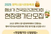 e데일리뉴스 | 평택시는 오는 25일 농업생태원에서 ‘2025 평택시 음식문화축제’를 통해 ▲전국 요리경연대회 ▲평택 지역 맛집 및 세계음식 시식·체험관 ▲노 오븐 베이킹 체험관 ▲탄소중립 실천·홍보관 등 다채로운 부스가 운영돼 시민들에게 풍성한 경험을 선사할 예정이다. 전국 요리경연대회는 ‘평택의 맛, 나만의 아이디어로 버거를 완성하다’를 주제로 총 18팀(일반부 10, 가족부 8)이 본선에 진출해 열띤 경연을 펼친다. 지난해와 달리 참가 부문이 일반부와 가족부로 확대됐으며, 시상 규모도 10팀 740만 원으로 늘어나 큰 기대를 모으고 있다. 경연대회의 생생한 현장을 함께할 시민 현장평가단도 사전 모집한다. 10월 24일(금) 오전 9시부터 오후 5시까지 일반부와 가족부 각 20명씩 무작위로 선착순 접수받으며, 편식 없는 고등학생 이상이라면 누구나 신청할 수 있고, 선정된 지원자는 실제 경연 현장에서 요리를 맛보고 평가하게 된다. 또한, 오전 10시에는 빵과당신 인재홍(대한민국 제과명장)이 진행하는 베이킹 체험이 마련돼 있으며, 참가 신청은 24일(금) 오전 10시부터 평택예총 공식 블로그 및 평택시청 누리
