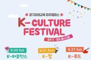 e데일리뉴스 | 경기도평생교육진흥원은 오는 20일과 21일, 27일 총 3회에 걸쳐 우리 음악과 음식, 전통문화 등을 아우르는 복합 문화축제 ‘K-컬처페스티벌’을 연다. 행사는 경기미래교육파주캠퍼스(구 파주 영어마을)에서 진행되며 ▲20일 K-퍼포먼스 ▲21일 K-POP ▲27일 K-푸드 등 회차마다 차별화된 테마로 방문객에게 다양한 한류문화 체험 경험을 제공할 예정이다. 첫날 20일에는 K-POP 커버댄스, 비보잉, 코레오 댄스를 비롯해 예능 스트릿우먼파이터 출연팀인 ‘원밀리언’의 축하공연이 진행된다. 21일은 자우림, 리센느의 축하공연을 시작으로 ‘K-POP’ 기반 퀴즈대회와 OST, 록 음악 등 다양한 장르 무대가 펼쳐진다. 27일은 ‘K-푸드’ 테마로 추석 명절 분위기를 미리 체험할 수 있다. 가족 단위 방문객이 함께하는 ‘대형 비빔밥’과 ‘장수 인절미’ 체험, 국악·풍물놀이 공연, 널뛰기·제기차기 같은 전통놀이가 준비돼 세대가 함께 즐길 수 있는 프로그램으로 구성됐다. K-드라마 연기체험, K-POP 보컬체험, 한지 전등갓 만들기 등 40여 종의 체험프로그램 역시 무료로 즐길 수 있다.