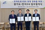 e데일리뉴스 | 경기도는 24일 경기도청 북부청사에서 경기남부도로(주), 제삼경인고속도로(주), 일산대교(주) 등 도내 민자도로 사업자 3개사와 ESG(환경·사회·투명) 경영 강화를 위한 업무협약을 체결했다. 지속가능한 도로 환경 조성과 지역사회 공헌활동 활성화를 위해 마련된 이번 협약체결에는 김대순 경기도 행정2부지사와 민자도로 사업자 대표이사가 참석했다. 협약의 주요내용으로는 환경 측면에서 온실가스 배출을 최소화하도록 친환경 시설물․장비 도입에 힘쓰고, 사회적 책임으로는 지역사회 공헌활동과 도로 이용객의 안전․보건 강화를 포함한다. 지배구조 부문으로는 법과 윤리를 준수하고 투명한 기업 운영 체계를 마련하는 데 적극 협력하는 내용을 포함한다. 경기도는 민자사업자의 원활한 ESG 경영을 위해 필요시 적극적으로 행정지원할 예정이며, 협약기관 간 실무협의회를 구성하여 ESG 경영 강화에 대하여 지속적으로 논의할 계획이다. 이번 협약으로 민자도로 수익의 지역사회 환원을 통해 민자도로에 대한 ‘비싼 요금’ 또는 ‘과도한 수익 추구’라는 기존 인식을 전환하고, RE100과 같은 글로벌 환경 목표에도 기여할