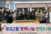e데일리뉴스 | 광교2동 지역사회보장협의체는 2025년 6월부터 12월까지 관내 독거노인 복지사각지대 대상자를 위한 '행복나눔 반찬나눔'사업을 운영하여 성공적으로 마무리했다. '행복나눔 반찬나눔'은 관내 어려운 이웃에게 정기적으로 직접 반찬을 전달하며 따뜻한 정을 나누는 복지사업으로, 지역사회보장협의체 위원을 비롯한 자원봉사자들이 반찬을 구매하여 독거노인들에게 직접 방문하여 전달하는 방식으로 운영됐다. 이번 사업은 매월 1회 진행되며 기초생활수급자 독거노인 등을 우선 선정해서 7개월동안 진행했고, 반찬 전달 시 안부 확인을 병행하는 정서적 돌봄으로 이웃사랑 나눔을 실천했다. 광교2동 지역사회보장협의체 이종금 위원장은 “단순히 반찬을 나누는 것을 넘어서 지역주민에게 이웃사랑 나눔을 실천했고 대상자들도 만족하여 의미있는 사업이었다”고 밝혔다. 또한, 박남숙 광교2동장은 “올 한해 지역사회보장협의체 위원님들과 봉사자 분들의 따뜻한 손길로 민·관이 함께하는 나눔 복지를 실현했다”고 말했다. 광교2동은 자원봉사자 모집과 반찬 기부 참여 등을 지속적으로 홍보하며, 내년에도 다양한 대상자들이 지원