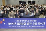 e데일리뉴스 | 수원특례시는 18일 팔달문화센터 예당마루홀에서 ‘2025년 정원문화 발전 유공 시상식’을 열었다. 정원문화 발전에 기여한 시민과 단체 등에 수원시장상(47개)과 수원시의회 의장상(7개)을 수여했다. 시상은 표창장·감사패 수여, 시민정원 경연대회, 베스트 관리상, 올해의 정원인상 등 분야별로 진행됐다. 지난 10월 효원공원에서 열렸던 ‘2025년 수원시 시민정원 경연대회’ 수상팀들을 시상했다. 하나의 물방울이 만들어내는 무한한 생명의 파장을 표현한 ‘완뚝원정대’의 ‘리플(ripple) 가든’이 대상을 받았다. 어린 꽃이 꿈꾸는 산의 이미지를 담은 ‘진달래동산 꽃뫼’ 팀의 ‘어린 꽃이 꿈꾸는 뫼(산)’이 최우수상, 빛과 생명의 흐름을 표현한 ‘빛나게’ 팀의 ‘Flowing Light, Flowering Life(플로잉 라이트, 플라워링 라이프’가 우수상을 받았다. 이재준 수원시장은 “도심 속 열린 정원은 시민에게 휴식처가 되고, 기후 위기 대응에는 힘이 된다”며 “정원을 가꾼 수상자 노력에 감사하며 시민 일상에 초록이 늘도록 지원을 이어가겠다”고 말했다.